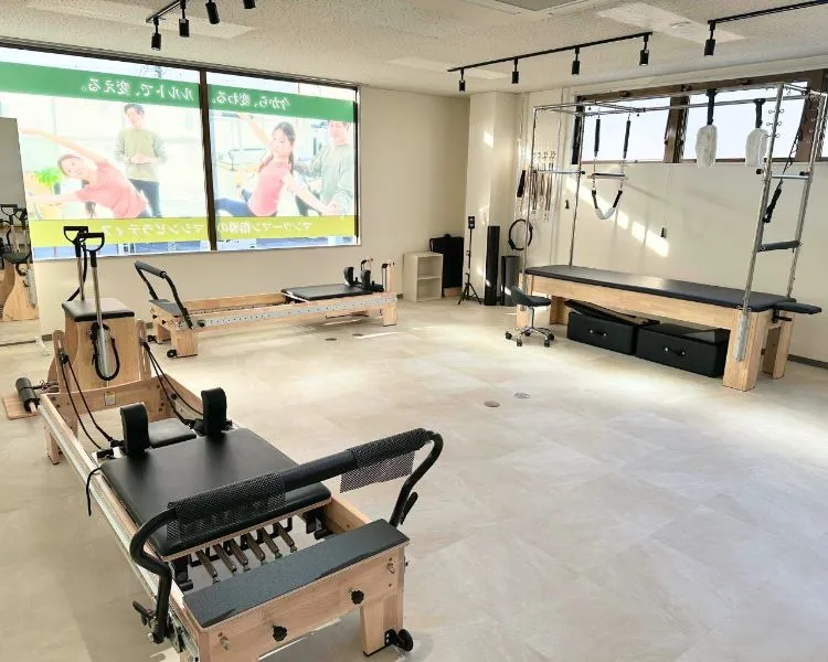 トレーニングでは、専用ピラティスマシン(リフォーマー・キャデラック・チェア等)を使用し、姿勢改善・体幹強化・柔軟性向上・身体機能改善など 多様な目的に対応した動きを取り入れたトレーニング を実施しています。経験豊富なインストラクターがフォームや動きの細かなポイントまで丁寧にサポートいたしますので、ピラティスが初めての方や運動に不安のある方でも安心して取り組める環境が整っております。