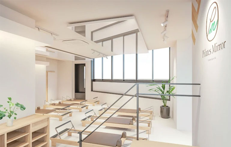 鏡とリフォーマーを用い、初心者でも正しいフォームを再現しやすい設計。
