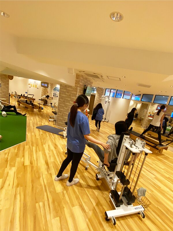 当スタジオでは、利用者が順番にマシンを使って身体を動かすサーキット型ピラティストレーニングを採用し、トレーナーによる個別サポート(セミパーソナル形式)も受けられます。